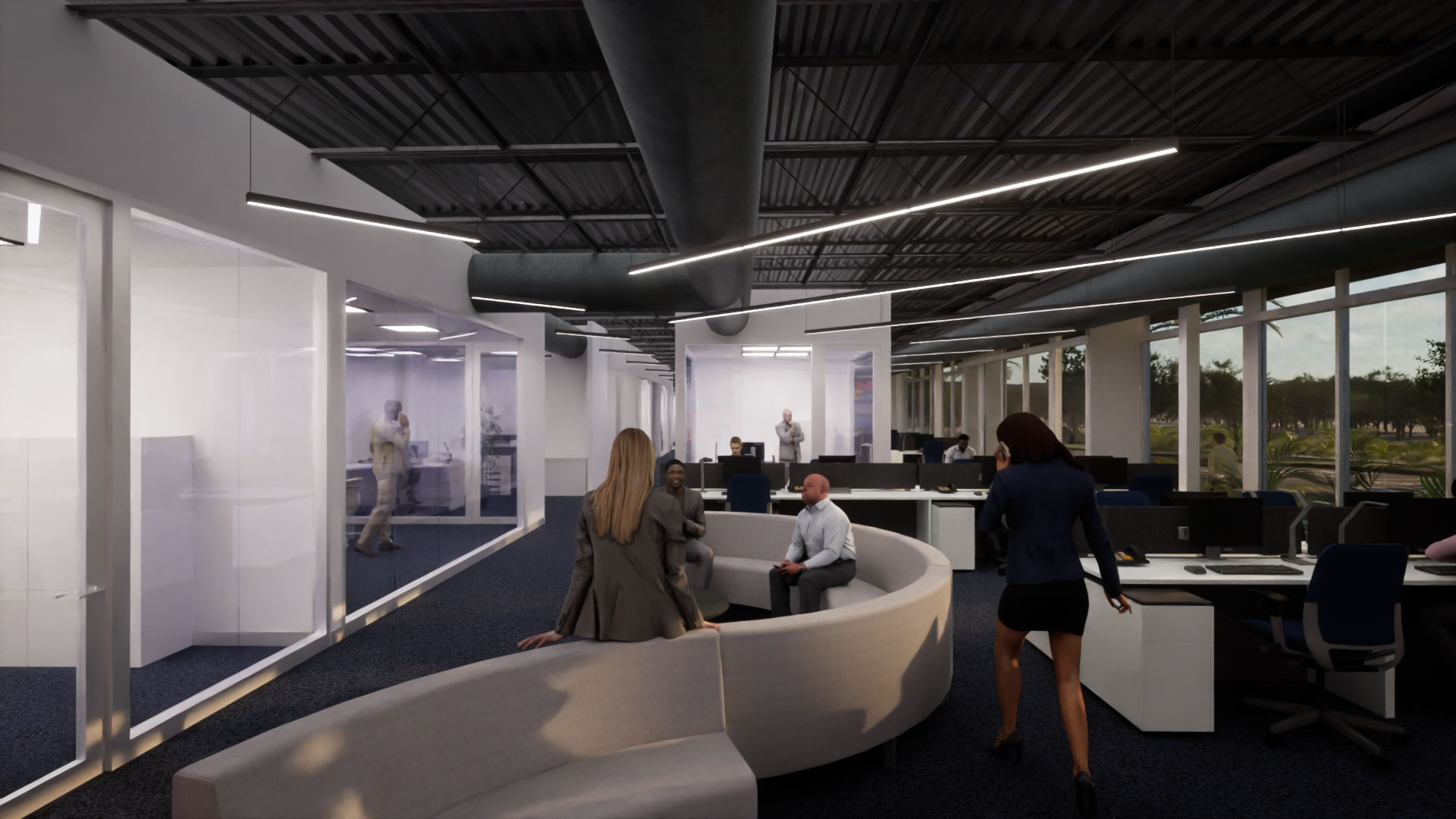 As part of the 2018 Master Plan, the administration lean-to building of the original 1968 structure was to be expanded east to accommodate growth projected for administration personnel. As construction of the Phase II improvements were closer to completion, PFS commissioned A+UD to design the new administrative offices and main entrance to their facility. The new design proposes inverting the old layout, with offices towards the interior and open space towards the exterior, maximizing natural light, transparency and incorporating colors and artwork throughout its new design parti. Design completion is expected 2025 and construction in 2026.
